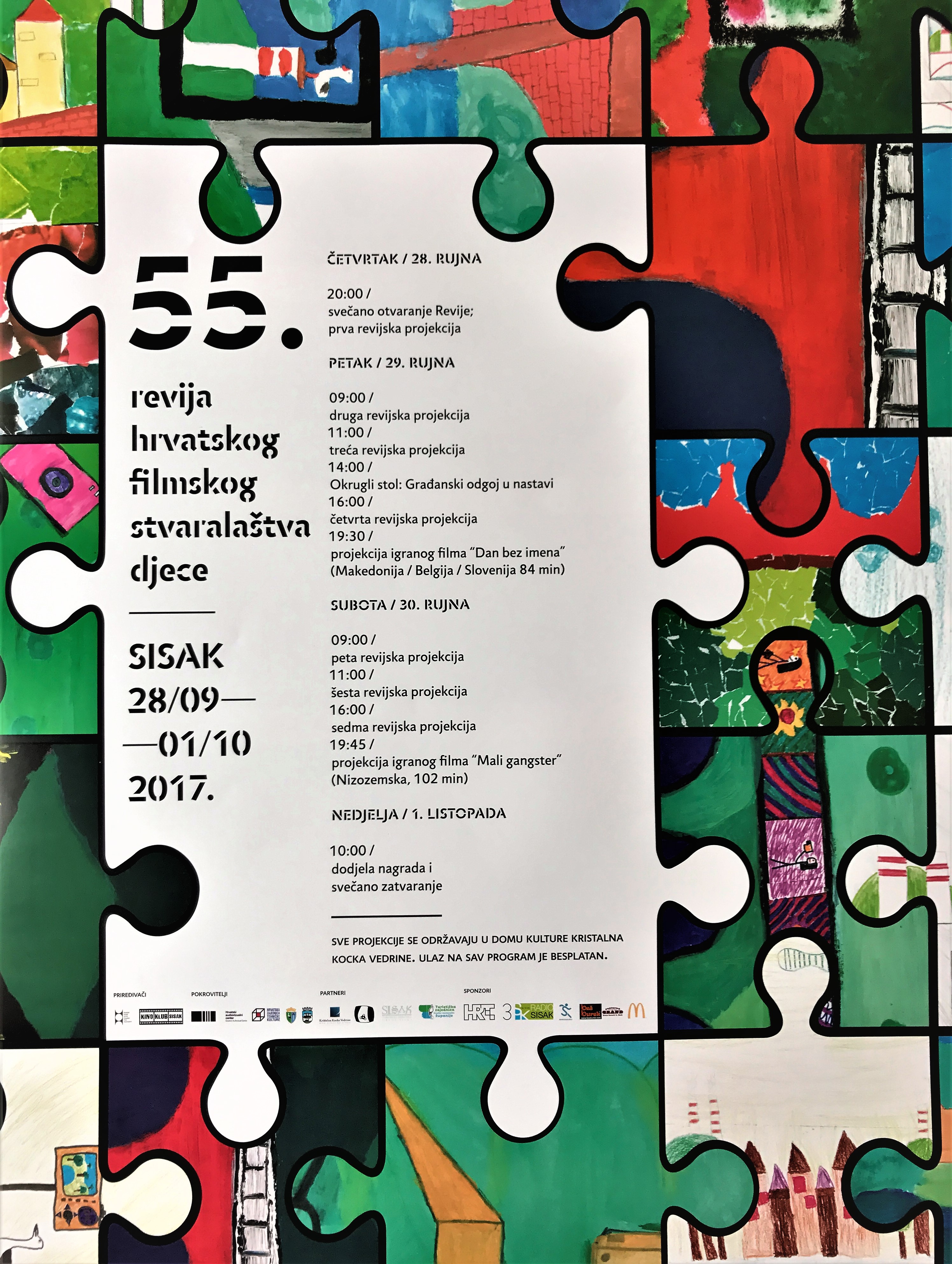 Sisak, 27. rujna – Grad Sisak od sutra privremeno postaje središte osnovnoškolskog filmskog stvaralaštva – od 28. rujna do 1. listopada održat će se u organizaciji Hrvatskog filmskog saveza i Kino kluba Sisak 55. izdanje Revije hrvatskoga filmskog stvaralaštva djece. Naredna četiri dana donose tako jedinstvenu priliku da se upoznate s filmskim radovima najmlađih generacija domaćih filmaša i filmašica!